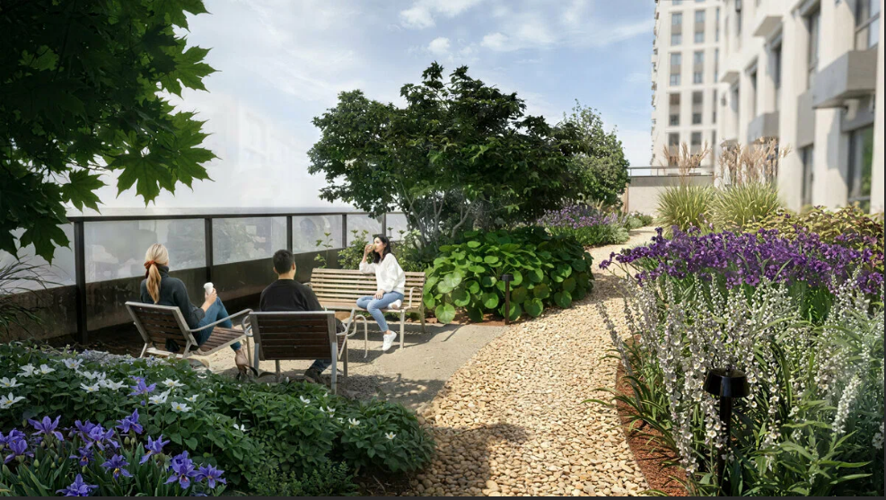У жилого комплекса закрытая территория в формате «без машин» с игровыми и спортивными площадками. Для парковки автомобилей предусмотрен подземный паркинг и открытые общественные стоянки.